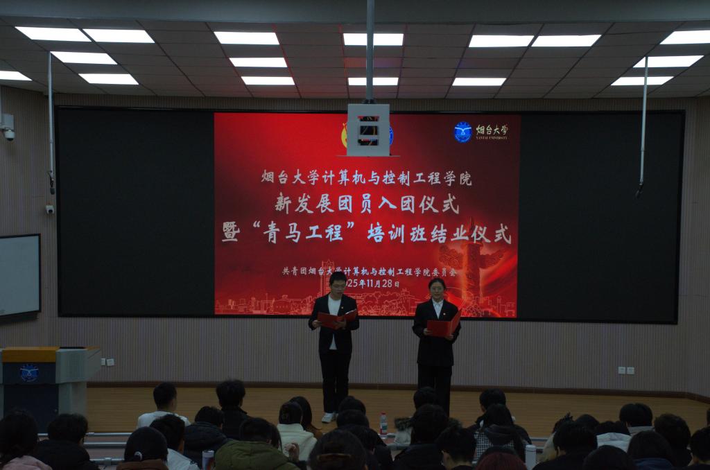 11月28日,策略论坛 2025年下半年新发展团员入团仪式暨青马工程培训班结业仪式在第二教学楼正式举行。策略论坛 党总支副书记王颖,团委书记苏倩,新发展团员及青马工程培训班全体学员参加。